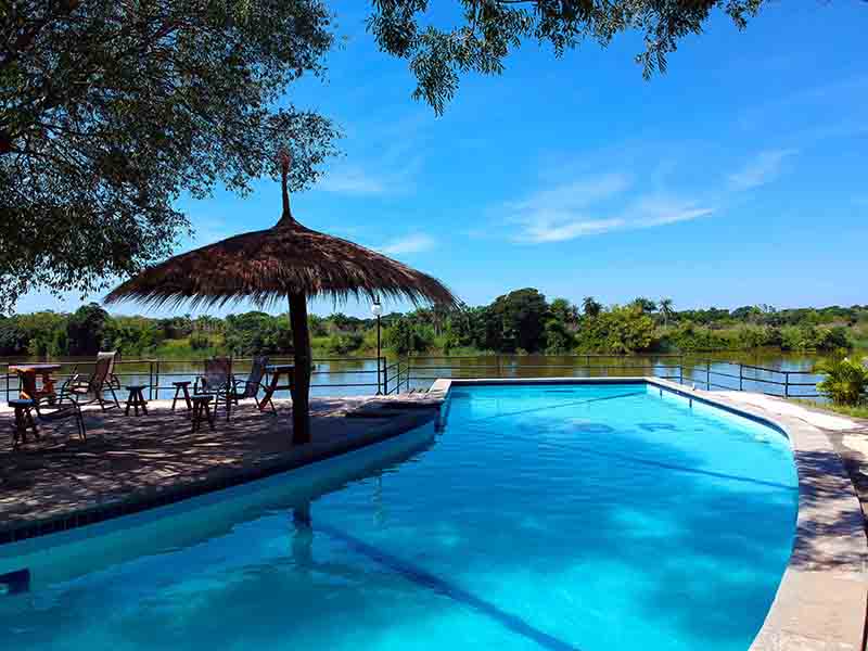Para maior comodidade dispomos de 31 acomodações distribuídos em 3 ambientes para atender diferentes grupos, sendo 15 quartos no prédio principal e outros 16 quartos dispostos em dois prédios com infraestrutura diferenciada e privativa, contendo cozinha completa e churrasqueira. As acomodações estão equipadas com ar-condicionado e frigobar. Toda estrutura do hotel se encontra às margens do rio Paraná. Contamos com porto privativo e lanchas de fibra equipadas conforme as normas da marinha. Contamos ainda com experientes guias de pesca, para proporcionar uma pescaria de excelência com a segurança que você e sua família merecem. O hotel oferece pensão completa. Café da manhã com frutas e sucos, almoço e jantar composto por comida com sabor tipicamente brasileiro. Para melhor atendimento, o hóspede pode optar por levar seu almoço em marmitas térmicas. Dispomos de playground e de uma ampla piscina cercada por quiosques, onde animais silvestres transitam livremente. Aqui você encontra as condições perfeitas para espairecer e recuperar as energias.